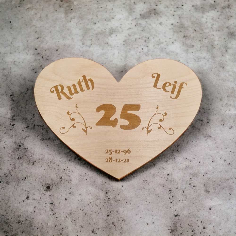 Gør din store dag endnu mere mindeværdig med vores flotte og moderne hjerte til æresporten. Vores æresport skilt i træ er designet i træ med omhu og er den perfekte måde at markere en særlig begivenhed på. Du kan tilføje navne, datoer og andre personlige