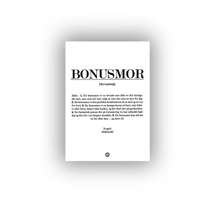 Dette søde kort giver dig definationen på hvad en bonusmor er, hun er nemlig noget ganske særligt. Giv din bonusmor dette kort, næste gang hun har fødselsdag, eller som en bare-fordi gave – det bliver hun med garenti glad for. Kortet er i A5 format.