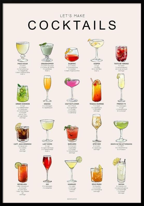 Yderlige produktinformationer: Produkt id: cocktails-med-opskrifter-plakaten-med-drinks-til-din-næste-fest