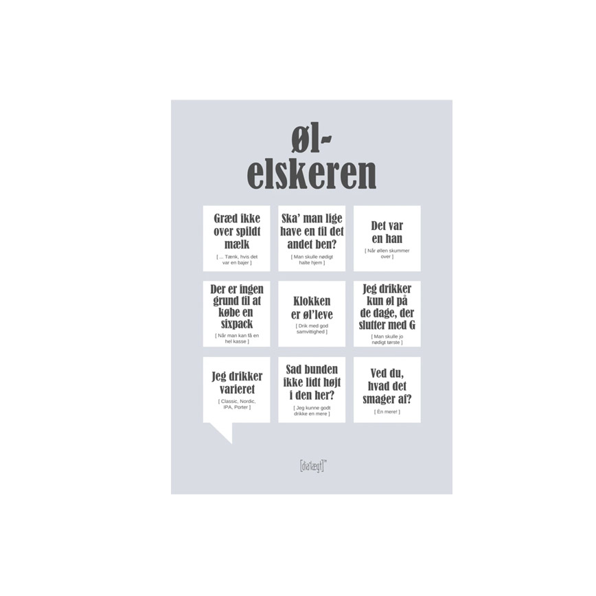 De skønne plakater fra Dialægt er designet i et moderne og grafisk udtryk. Alle plakater har samme design, så du kan hænge dem ved siden af hinanden og fortælle en lille historie om din helt egen familie. Denne plakat omhandler øl-elskerenog er i A5 fo
