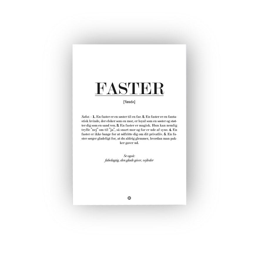En fasterer noget helt særligt. Det er den veninde du kan dele alt med, hun er loyal som en søster og så elsker hun dig som en mor. Dette kort definere lige præcist det, en rigtig god faster. Giv din faster dette kort næste gang hun har fødselsdag, e