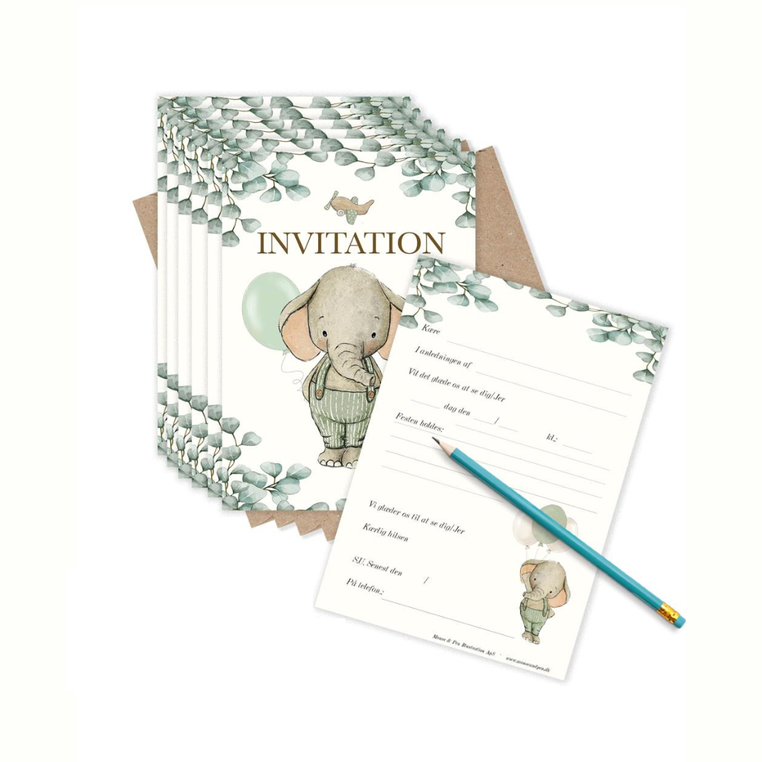 Yderlige produktinformationer: Produkt id: indbydelser-med-elefant-dreng-stk