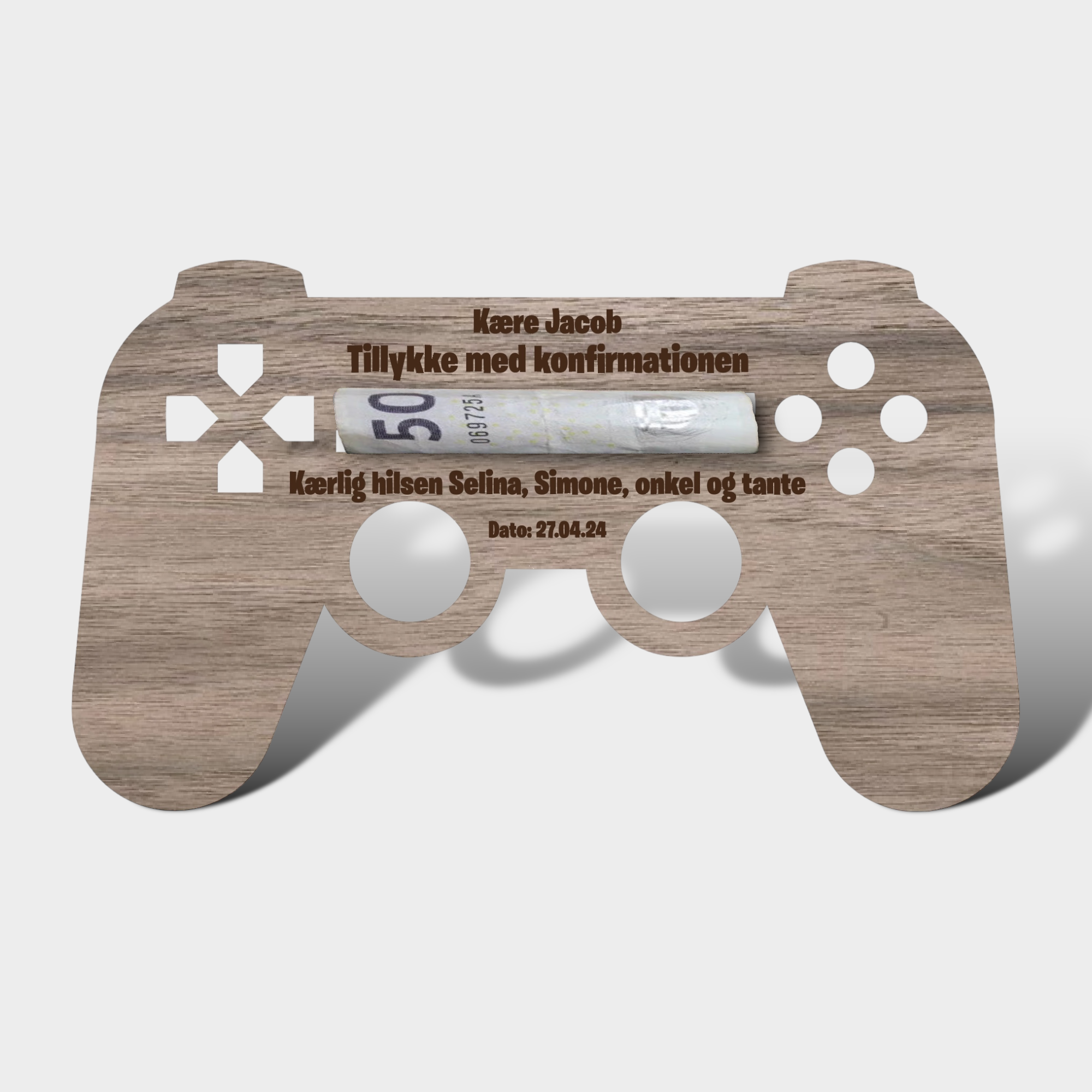 Gaven til alle der elsker gaming. Cool id til konfirmation. Giv pengegaven til konfirmanden eller fødselaren på en helt speciel måde. Med plads til flere sedler og en flot unik gravering efter dit ønske, vil gaming-controlleren være et hit hos modtageren