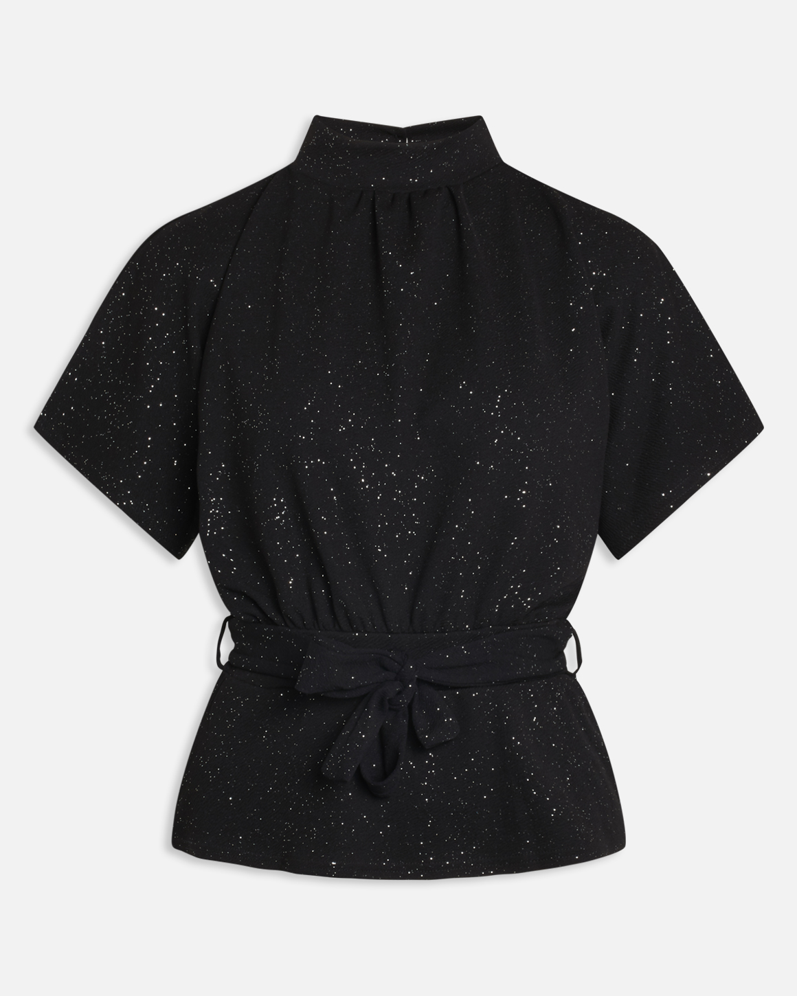 girl-top2, bluse. Bluse i glimmer med bindebånd i taljen.