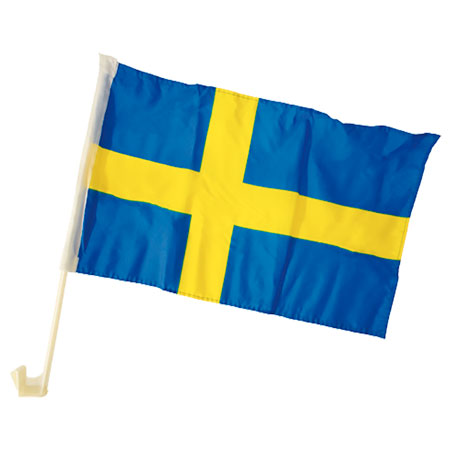 Svensk flag til montering på sideruder på bil. De kan nemt monteres på ruden når man ruller ruden ned, så klikkes de nemt nedover ruden. Det svenske flag til fest og højtider, til pynt til bilen. Flaget måler ca 40 x 31 cm. Stang er ca 44 cm lang. Pro