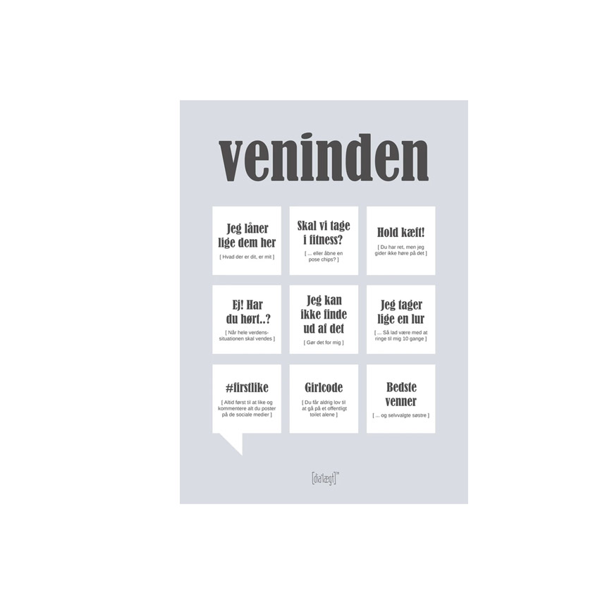 De fine plakater fra Dialægt har et moderne design og et grafisk udtryk. Alle plakater har samme design, så du nemt matche dem og hænge dem ved siden af hinanden og fortælle en lille historie om din helt egen familie. Denne plakat omhandler venindenog e